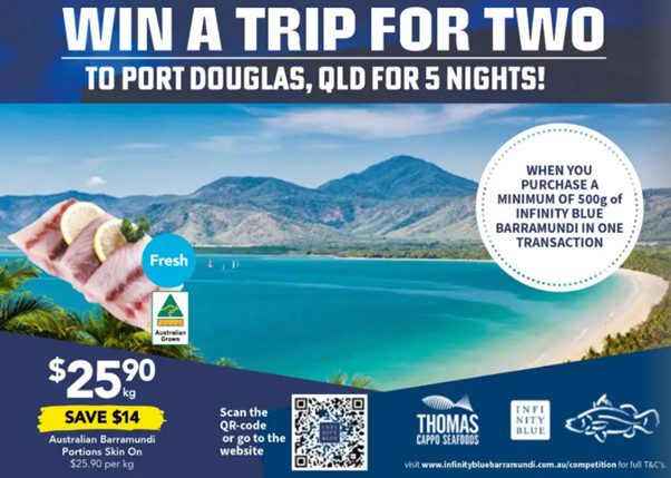 TRY AUSTRALIA’S BEST BARRAMUNDI AND GO INTO THE DRAW TO “WIN A TRIP FOR TWO” TO BEAUTIFUL PORT DOUGLAS FOR 5 NIGHTS.