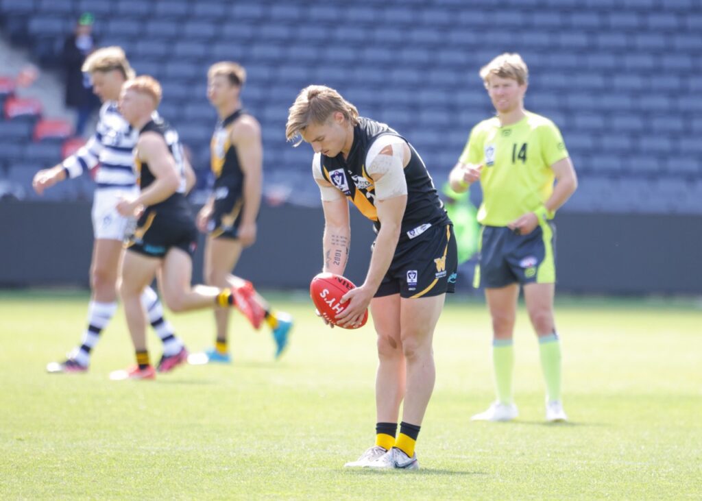 Harry Grintell kickstarted Werribee’s 2024 with the first goal of their season, while a Kye Declase goal from well outside 50 metres in the dying stages made it an eleven-point lead at quarter time. New recruit Riley Bice was impressive off half-back in his first quarter for the club, while Jack Henderson led the way with eight disposals.